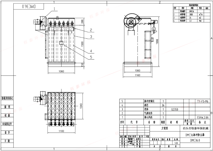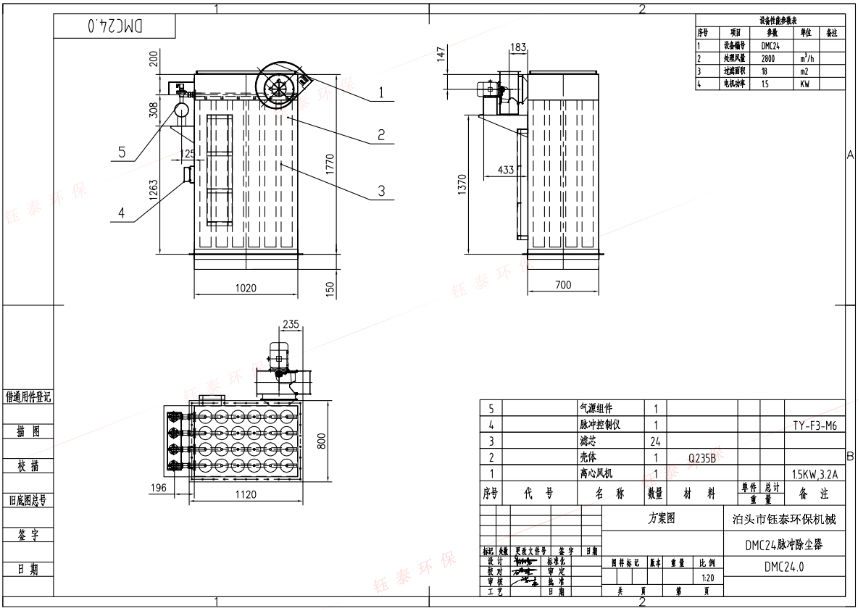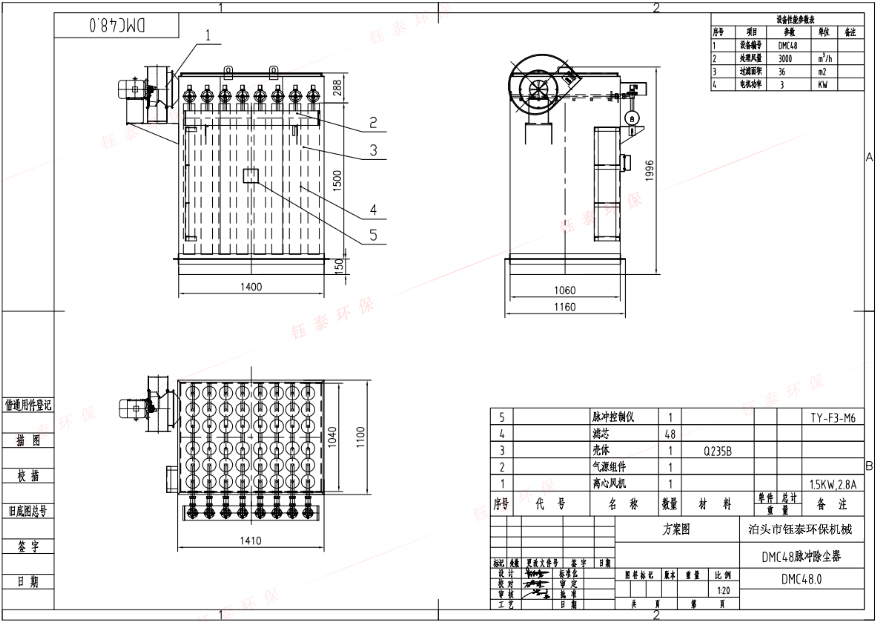 | 設(shè)備型號 | 處理風(fēng)量(m³/h ) | 濾袋數(shù)量(只) | 過濾面積(㎡) | 電機(jī)功率(Kw) |