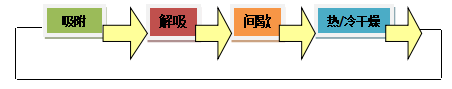 脫附過程結(jié)束后,吸附器內(nèi)的溫度很高,通過間歇過程可使吸附器放空降溫,以及通過調(diào)節(jié)間歇時(shí)間來調(diào)整總的吸附時(shí)間。